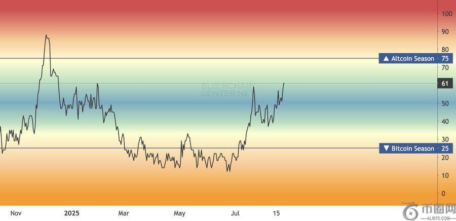与此同时,Crypto Goos著名的季节指数已达到 71,接近标志着季节正式到来的 75 大关。图表显示,该指数在 2024 年末飙升至 90 以上,但在 2025 年 3 月的比特币季节期间有所下降,随后在 5 月至 8 月期间稳步回升,最新数据显示的势头将超过比特币。