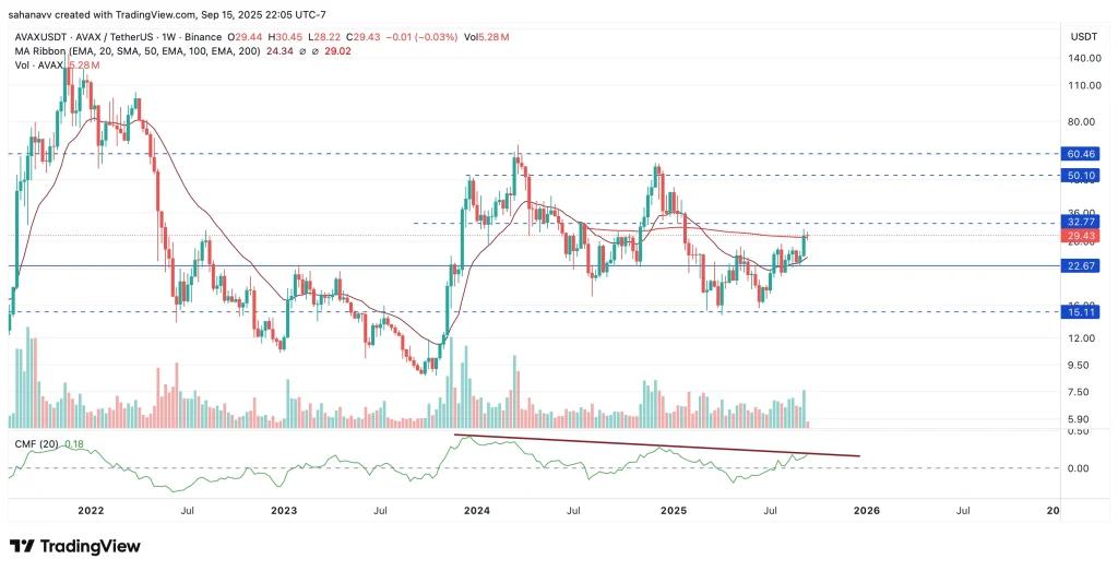 无论当前市场如何波动,Avalanche 的价格都强劲突破了关键阻力位(转为支撑位)22.67 美元。AVAX 价格正处于决定性阶段,即将到来的突破可能帮助它突破障碍并达到 50 美元。