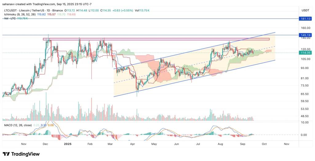 尽管莱特币并未跻身交易量巨大的代币之列,但这轮上涨行情正缓慢逼近关键关口。目前,莱特币价格处于一个平行上升通道内,并徘徊在均线附近。然而,目前的图表形态和技术指标显示,莱特币价格将出现10%的回调。