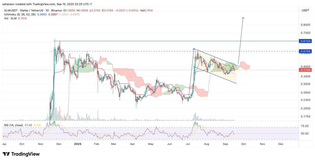 在 7 月份大幅上涨 120% 之后,恒星价格一直保持强劲的下跌趋势。价格形成了连续走低的高点和低点,最终耗尽了抛售压力。一旦完成,趋势反转,随后突破,可能引发强劲的看涨浪潮。