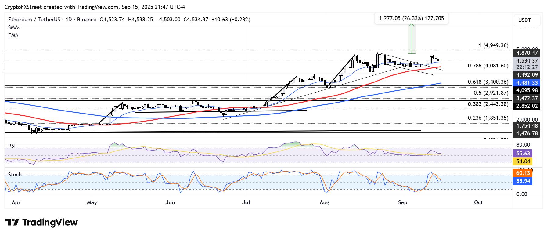 以太坊价格预测:周末下跌后,ETH 将测试 4,500 美元和 14 天 EMA