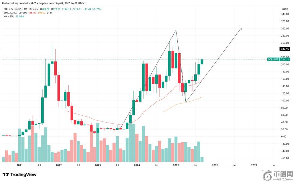 过去几周,Solana 的价格走势呈现出一种积累态势,并突破了 198 美元的阻力位。然而,这之所以意义重大,是因为 Solana 已连续数周在该区域下方交易,使其成为一股强劲阻力。不过,鉴于价格已突破该区域,并在接下来的一周内突破 210 美元的支撑位,专家们预计其将突破 300 美元。
