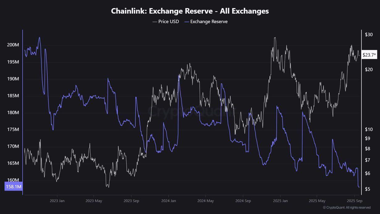 与此同时,LINK 在中心化交易所的供应量已降至多年来的最低水平——这是一个典型的信号,表明机构正在长期积累,并从现货流动性中撤出代币。综合来看,以下几点构成了一幅清晰的图景:Chainlink不再仅仅是“神谕的DeFi”但正在演变成风险加权资产以及机构需求。