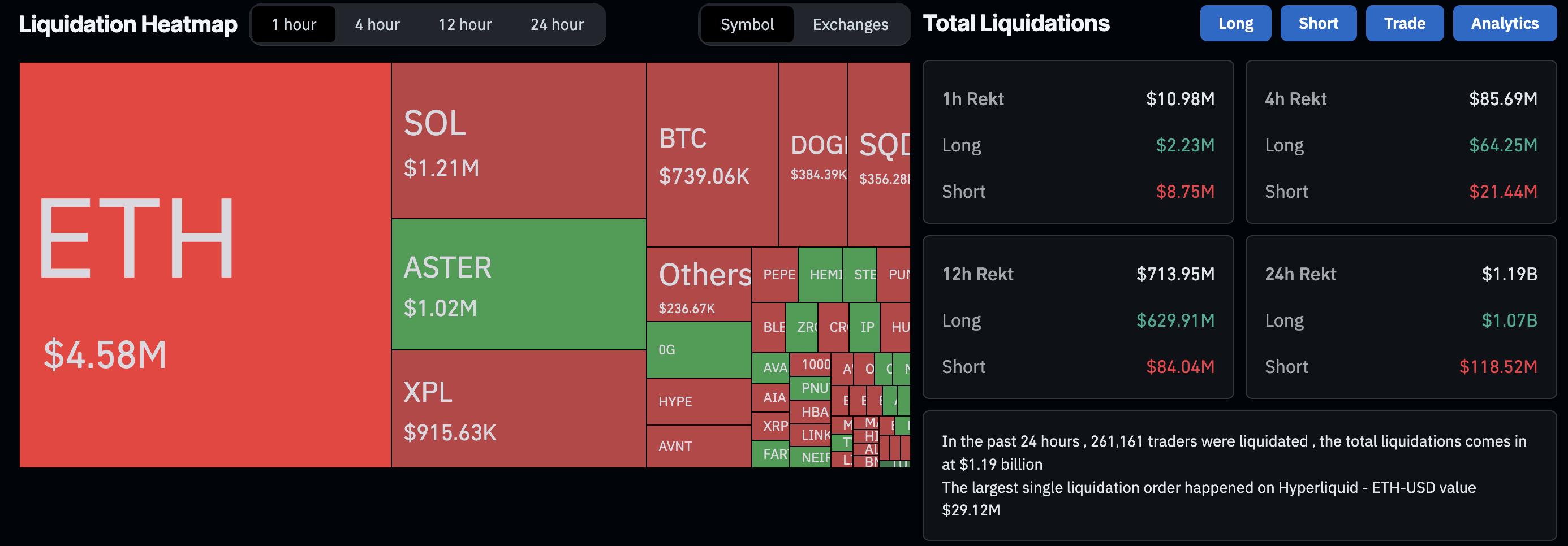 在恐慌之中,CoinGlass 报告称加密货币市场多头清算超过 10 亿美元,表明存在避险情绪。