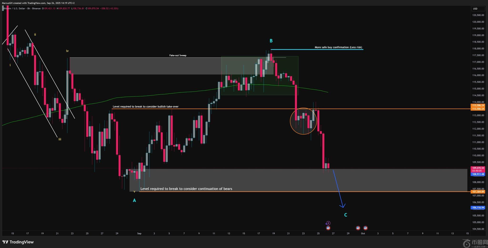 如果比特币不能恢复到 114,500 美元的水平,则很有可能跌至 108,000 美元。