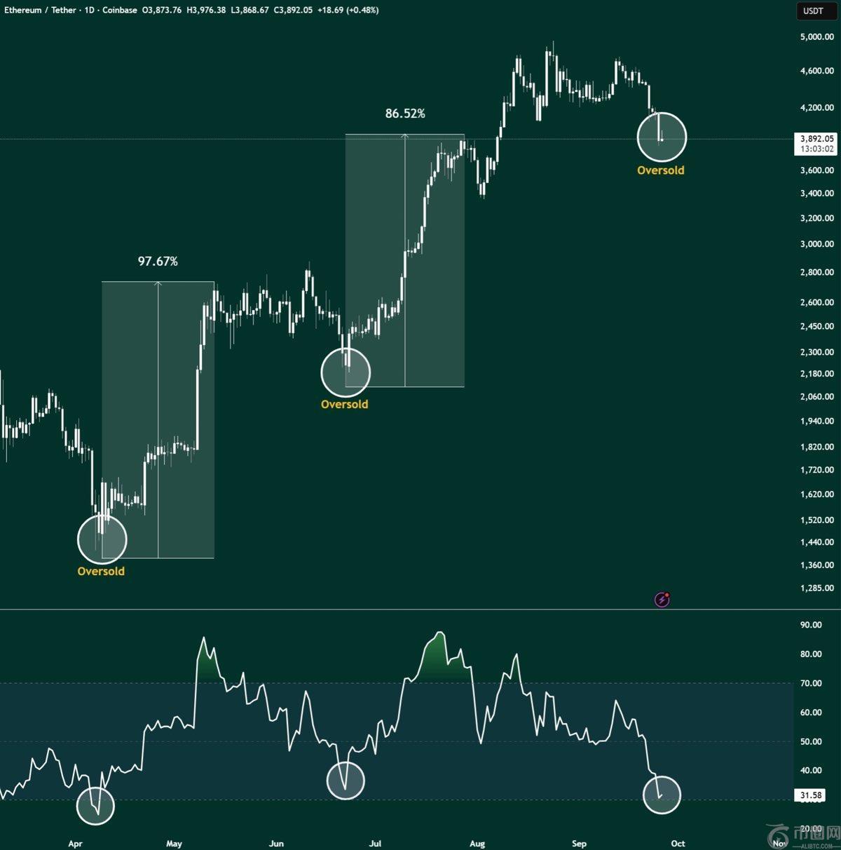 分析师戈登 (Gordon) 就此发表讲话著名的以太坊现在看起来比关税暴跌以来更加超卖。他提醒交易员,那些购买那早些时候的下跌那崩盘时股价上涨了 200%,警告不要错过可能出现的类似机会。
