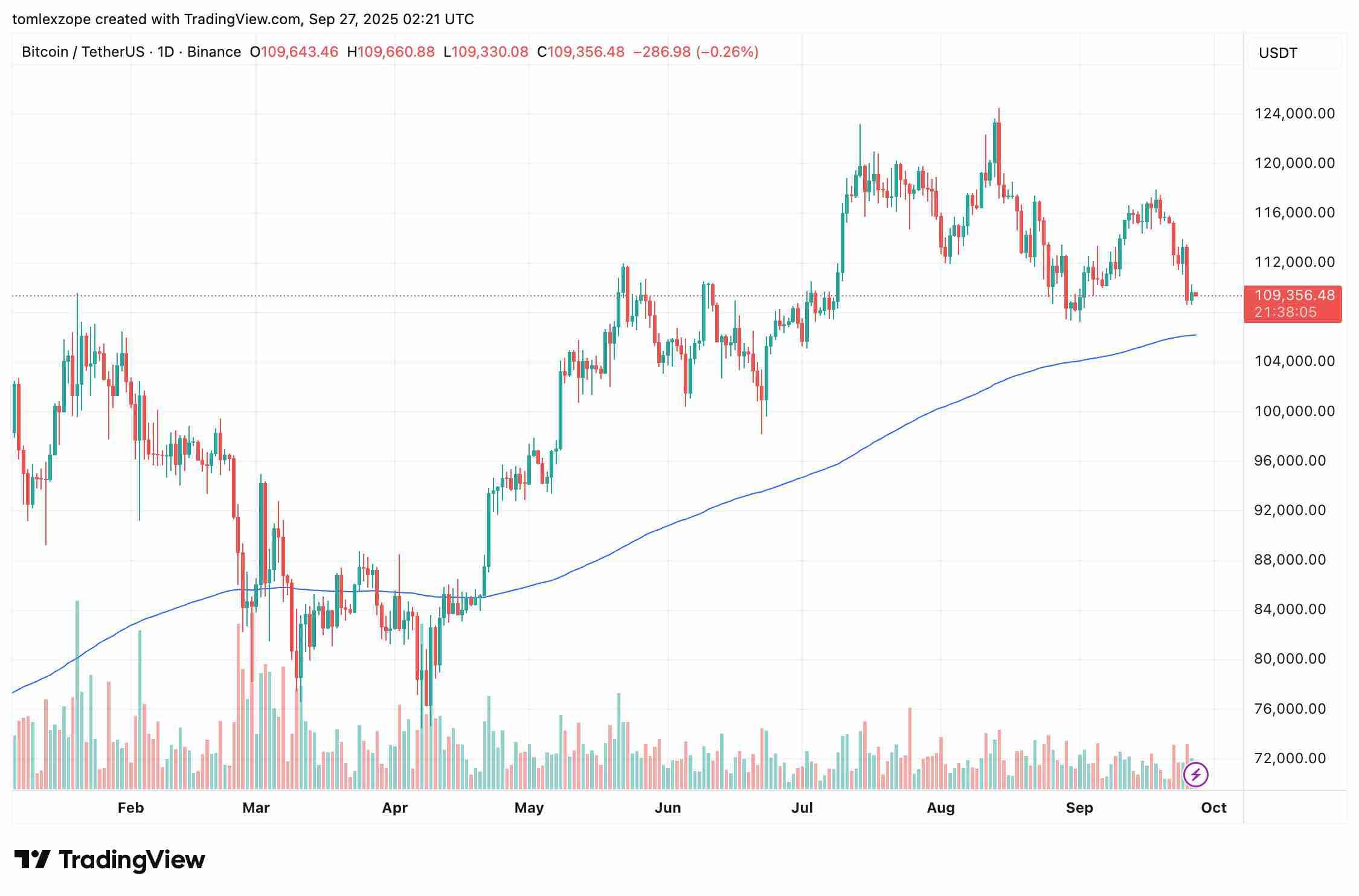 截至本文撰写时,BTC 的价格约为 109,538 美元,过去 24 小时内没有发生显著变化。