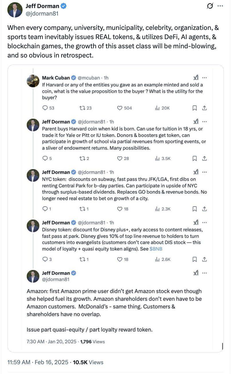 大多数人甚至还不知道代币投资的世界(除了比特币和模因币)的存在。但现在,由于 ETH、SOL、BNB、HYPE、稳定币和 Polymarket 每天都在新闻中出现,他们开始关注。投资者并不关心底层技术、自由主义的理想主义,也不关心去中心化。他们关心的是如何实现增长和利润。