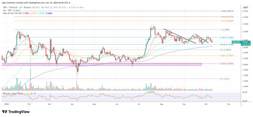 截至发稿时,XRP 交易价格为 2.815 美元。