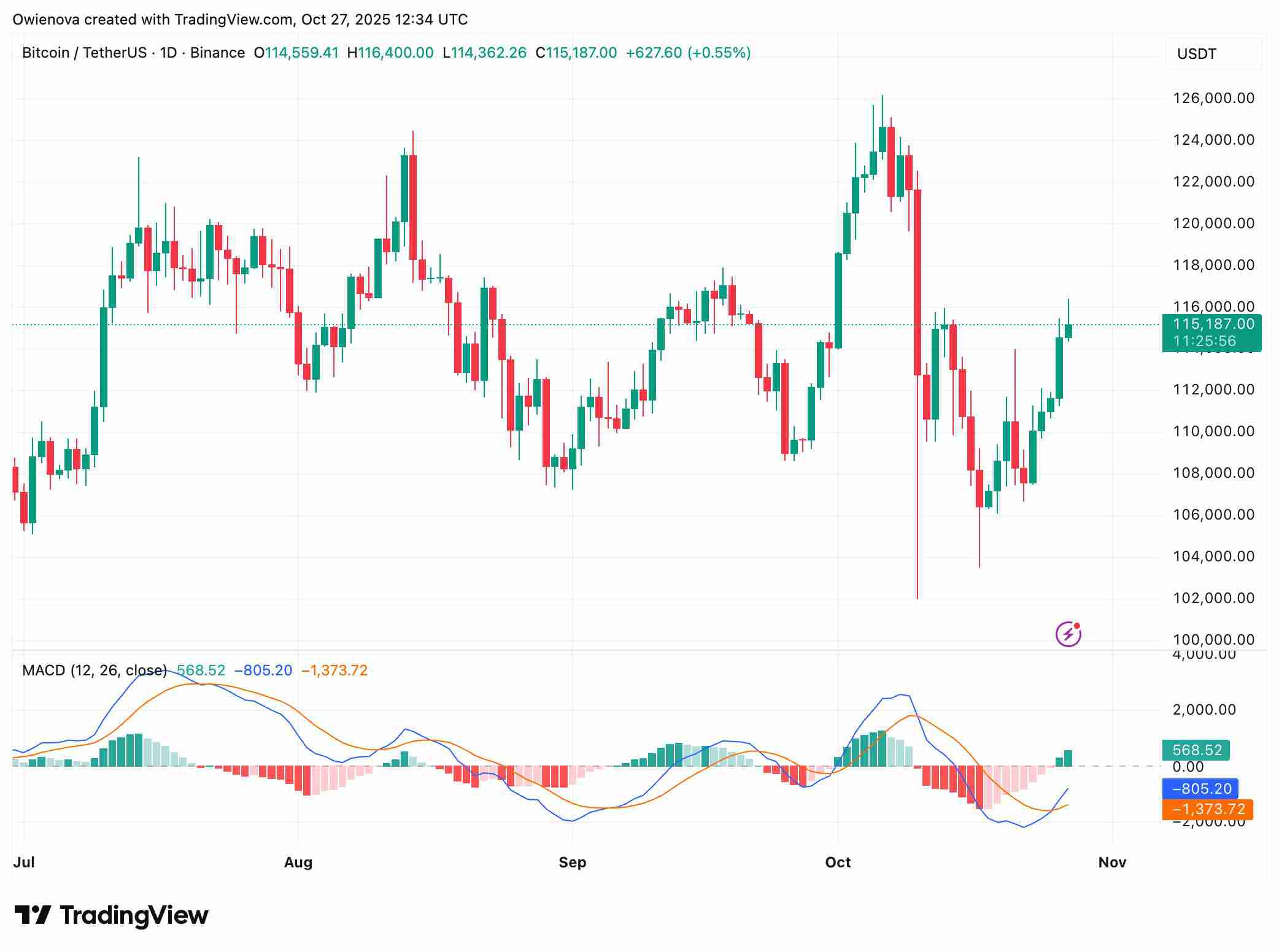 BTC 在 1D 图表上交易价格为 115,187 美元 | 资料:BTCUSDTTradingview.com