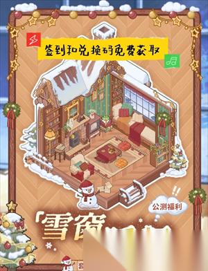 公测活动期间,菜友们可以免费获取完整「雪窗暖阁」套间(共29件,内含边框、发光屋顶等等)。
