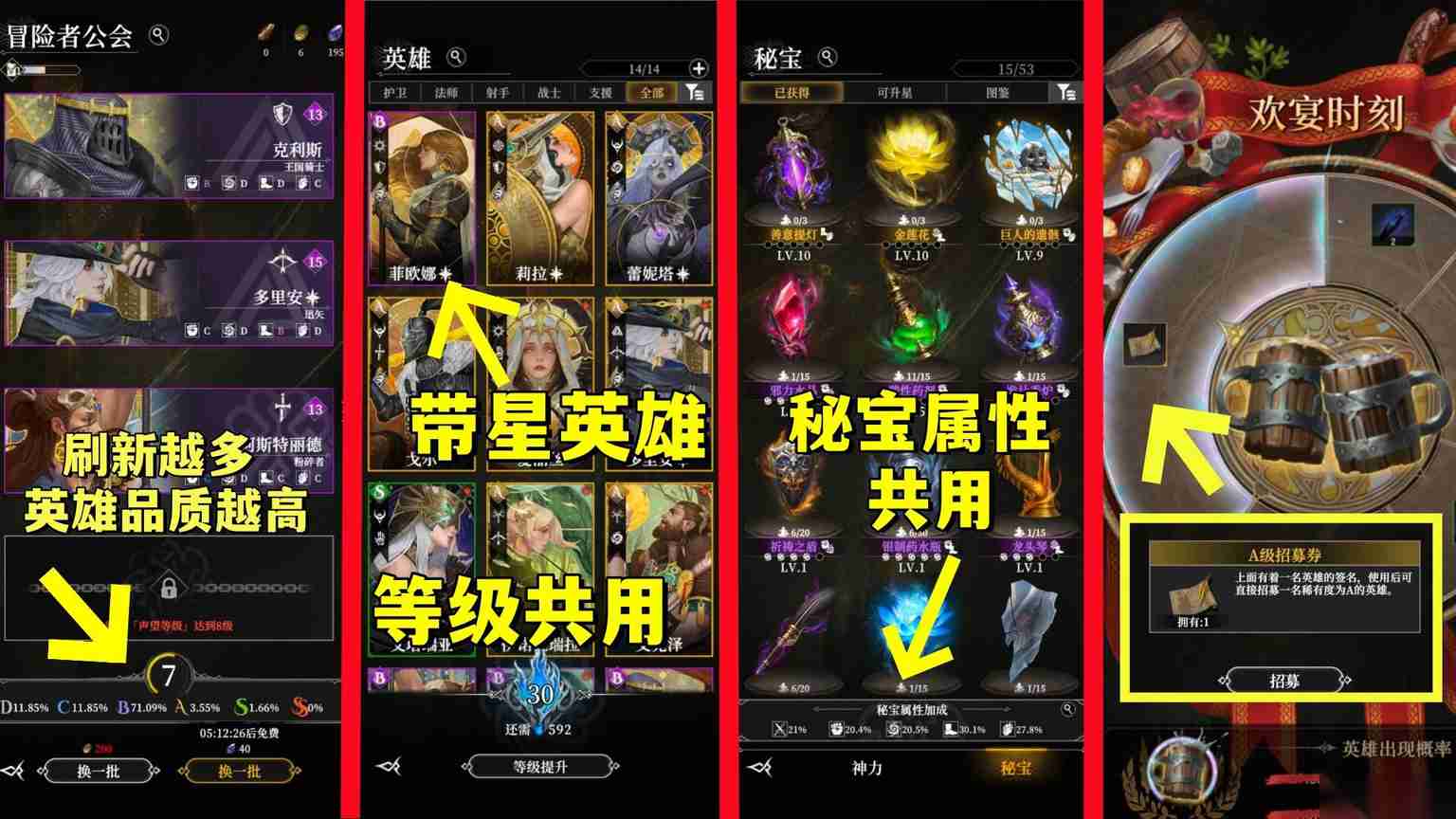 在《地下城堡4骑士与破碎编年史》里,新手玩家想快速上手?这份攻略别错过!招募英雄有技巧,金币宝石刷新升声望,遇“酒桶”别放过;“星星”英雄唯一,普通英雄可多囤。而且英雄等级、秘宝属性加成皆共用,有材料就升无顾虑!快来解锁英雄搭配养成新思路!