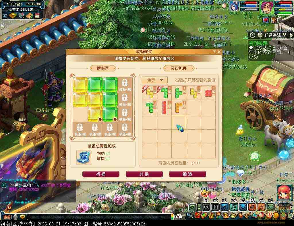 此外,白玉踏云靴还有专属的聚灵效果。玩家在完成环任务、小副本、挑战怪时有几率获得聚灵宝石,可用于镶嵌在白玉踏云靴上进一步提升属性。镶嵌时需要注意白玉踏云靴的插槽。插槽大小随着白玉踏云靴的强化也会变大。