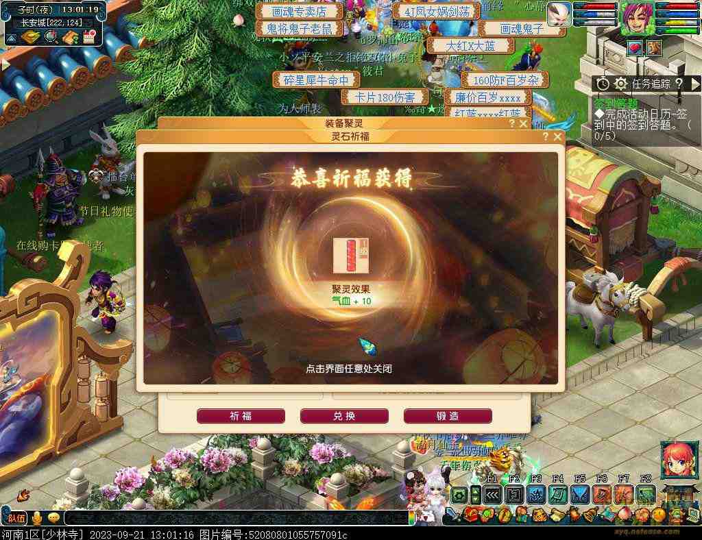 如果玩家没有获得聚灵宝石,也可以在聚灵界面进行祈福,每次祈福需要消耗5W梦幻币,祈福后可获得随机的聚灵宝石,每天每名玩家最多祈福50次。