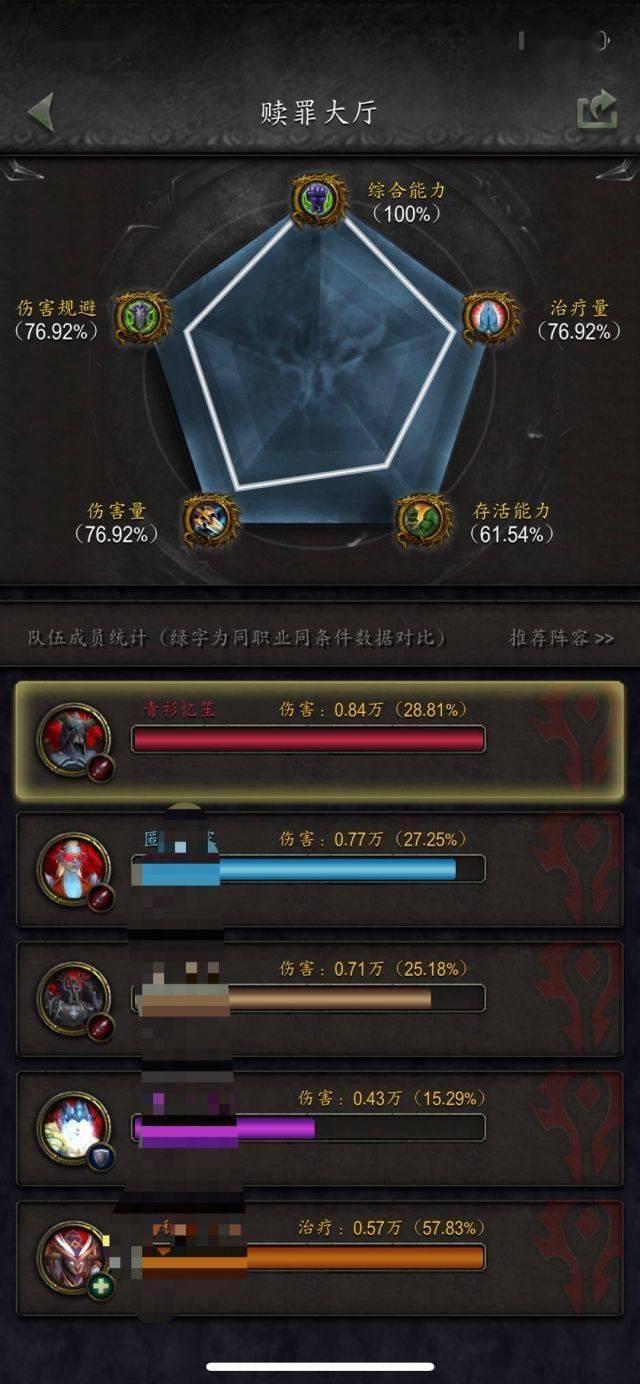 赎罪:不是快乐大厅了,时间很紧张,不过可能跟我们组了一个老板法师有关系。单体打不过t,aoe也a不过我,和一个战士都是7000多秒伤,我大概8400,然后16超时10秒钟。