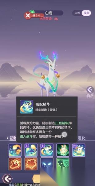 九色鹿作为功能性法术辅助妖灵,其三色精华系统提供团队增益的多样性。红色精华提升攻击与连击率,蓝色精华增强还击与减伤能力,绿色精华则提供即时治疗,三种效果随机触发但均可通过策略引导实现战术目标。该妖灵特别适合需要灵活调整战术的队伍配置,其药圣状态提供的免死效果在关键时刻能改变战局走向,但培养时需要重点提升其生存能力。