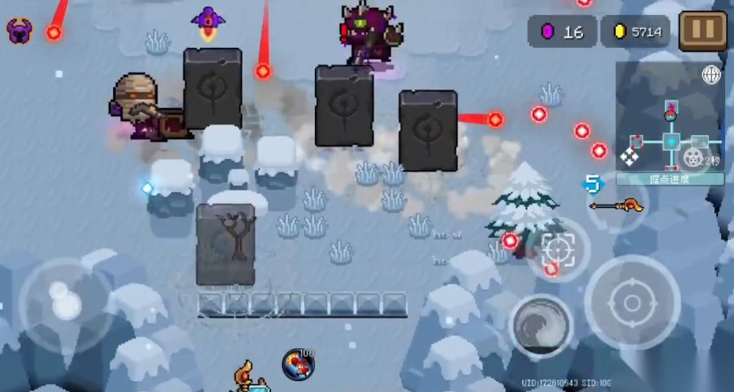 同时新增的石碑机制大幅提升了武器的功能性。挥动法杖会降下三块生命值为 20 的石碑,石碑存在 8 秒期间每 3 秒释放一次半径 5 格的近战震波,不仅能转化敌人,还可消除攻击力小于等于自身生命值的敌方子弹。这种攻防一体的设计让权杖在弹幕密集的场景中获得了生存保障,尤其在守护神殿模式中表现突出。