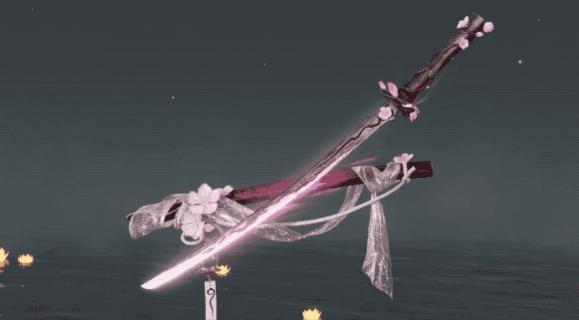 柔软的粉纱伴随着樱花缠绕在刀鞘上,樱花木制成的刀柄上也落着细小的花朵,粉红色的光芒在刀刃上流淌,等待着的花瓣上给优雅致命的打击。