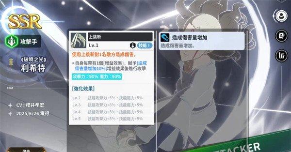 利希特:作为光系输出的角色,在攻击之前他能够有效地将自身的暴击能力得到提升,而且还可以直接忽视对方的防御。在战斗的时候他能够有效地施展必杀技,这样就会对敌人造成一定范围内的伤害。其实他还能够灼烧敌人的希望。