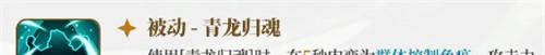 使用[青龙归魂]时,在5秒内变为群体控制免疫,攻击力提升120%。