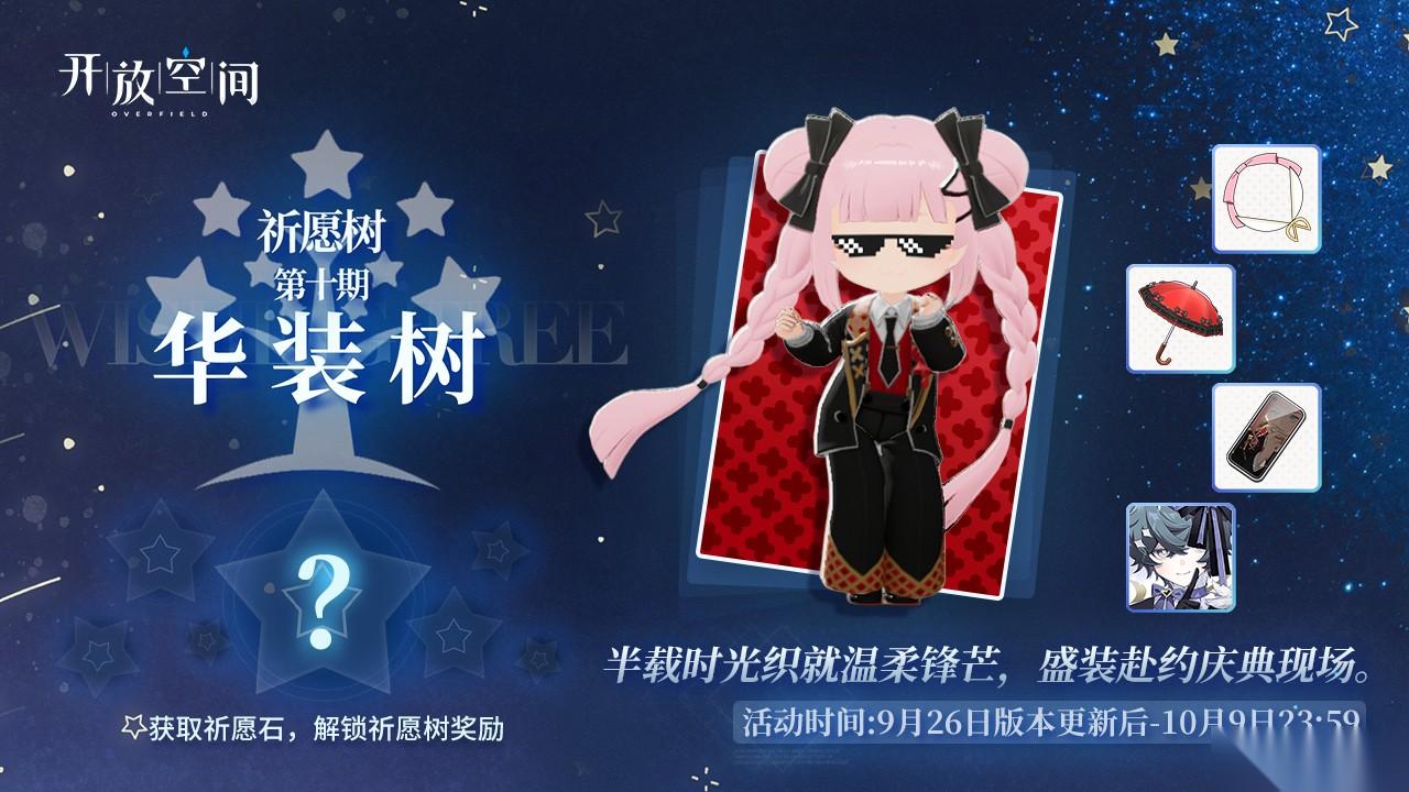 半载时光织就温柔锋芒,盛装赴约庆典现场。收集祈愿石,解锁第十期「华装树」奖励——华丽西装套装。