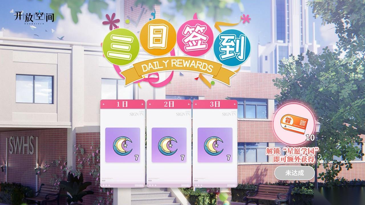 庆典季签到活动即将开启!活动分为上、下两期,参与活动共可获得限定券*20、自选SSR映像*2等丰富奖励~校园祈愿三日活动即将开放,每日登录签到可领取7颗祈愿石。解锁星愿学园地图还可领取十连限定券!