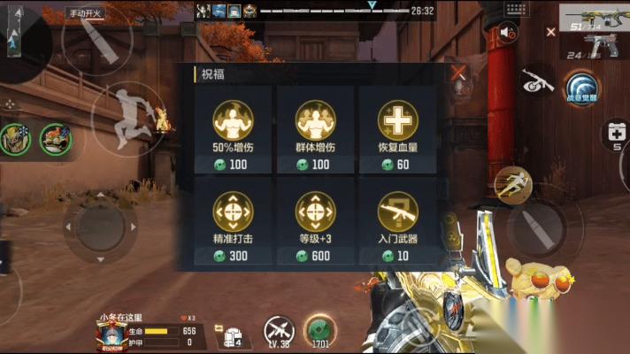 技能6:入门武器。价格10个货币,使用后将随机获得挑战型武器,例如征服者-超越、乱世-超越等,但死亡后武器将会消失。