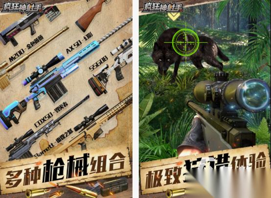 将在这里面成为一名狙击手,在完成任务的过程当中,不仅要精准的瞄准猎物,里面还给大家设置了操作的最低任务,通过控制好枪械,展开射击以后,感受一击毙命所带来的成就感。无论是对里面的各种动物,或者是里面的靶心进行射击,大家在玩的时候都需要精准的控制好枪械,在非常真实的游戏画面当中展现出自己的实力。