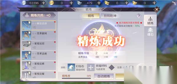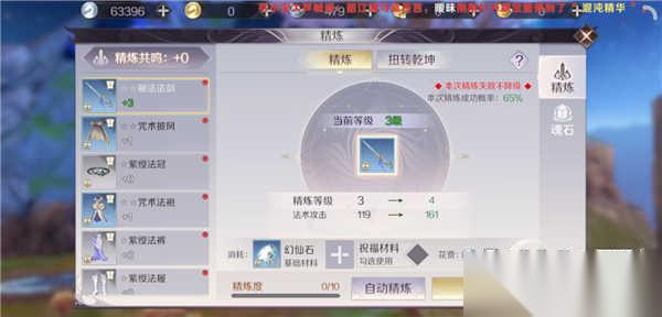 精炼:人物等级的提升能够带来整体属性的提升,武器等级的提升也同样如此,这个时候就需要玩家进行精炼来提升武器等级。在这其中也需要消耗一定的幻仙石,当然也是存在着一定的失败率。