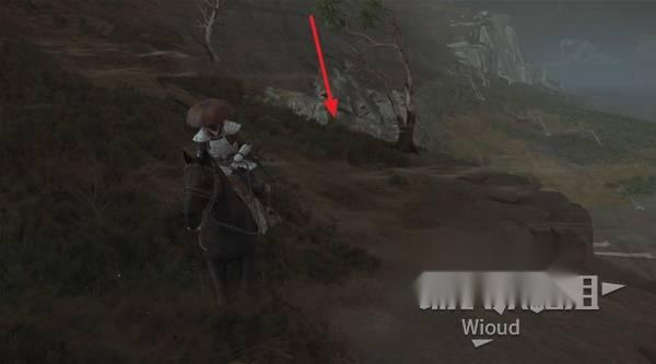 先往红圈方向走,直到靠近悬崖边,找一条路往下走,底部往红圈处移动。