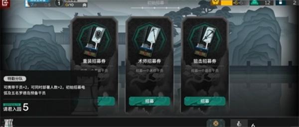 招募策略:第一层获取的所有招募券先保留,在商店中优先兑换狙击或辅助券。如果出现狙击类精二藏品,可优先入手;若没有,刷新几次尝试获取更合适的藏品。
